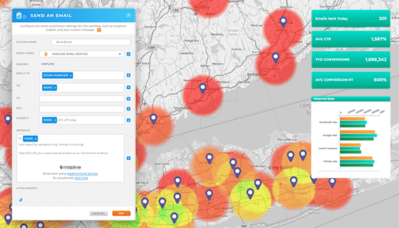 Send targeted text and email messages tailored to your audience’s exact location. Drive higher open rates and conversions by reaching your customers with the right message at the right time.