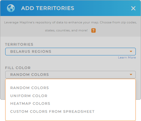 Pro Tip: Mapline’s extensive list of territory boundaries allows you to add precise regional divisions to your map. Leverage our worldwide territory repository including Belarus districts and regions, to explore new opportunities and gain deeper insights into your logistics data.