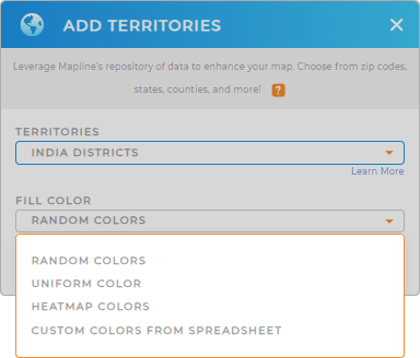 Pro Tip: Leverage the power of Mapline’s repository by adding territories of India to your map, including districts, India subdistricts, India states, and more. Gain full knowledge about your business operations by incorporating various territory levels into your analysis.