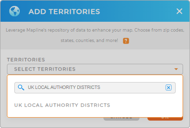 Unlock the power of Local Authority Districts in the U.K. as you add a new territory from Mapline’s repository. Type UK LOCAL AUTHORITY DISTRICTS to quickly add this territory to your map.