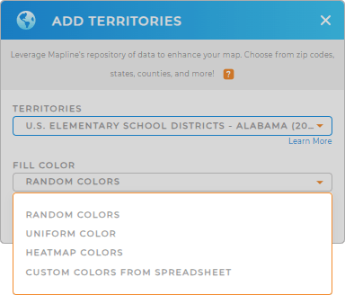 First, add a new territory from Mapline’s Repository. Then, utilize the search bar to find the school district you’d like to add. It may be: