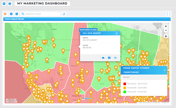 Once you’ve added boundaries to your map, it’s time to dive into a regional market analysis! See market share by area, as well as other key information for each of your territories.